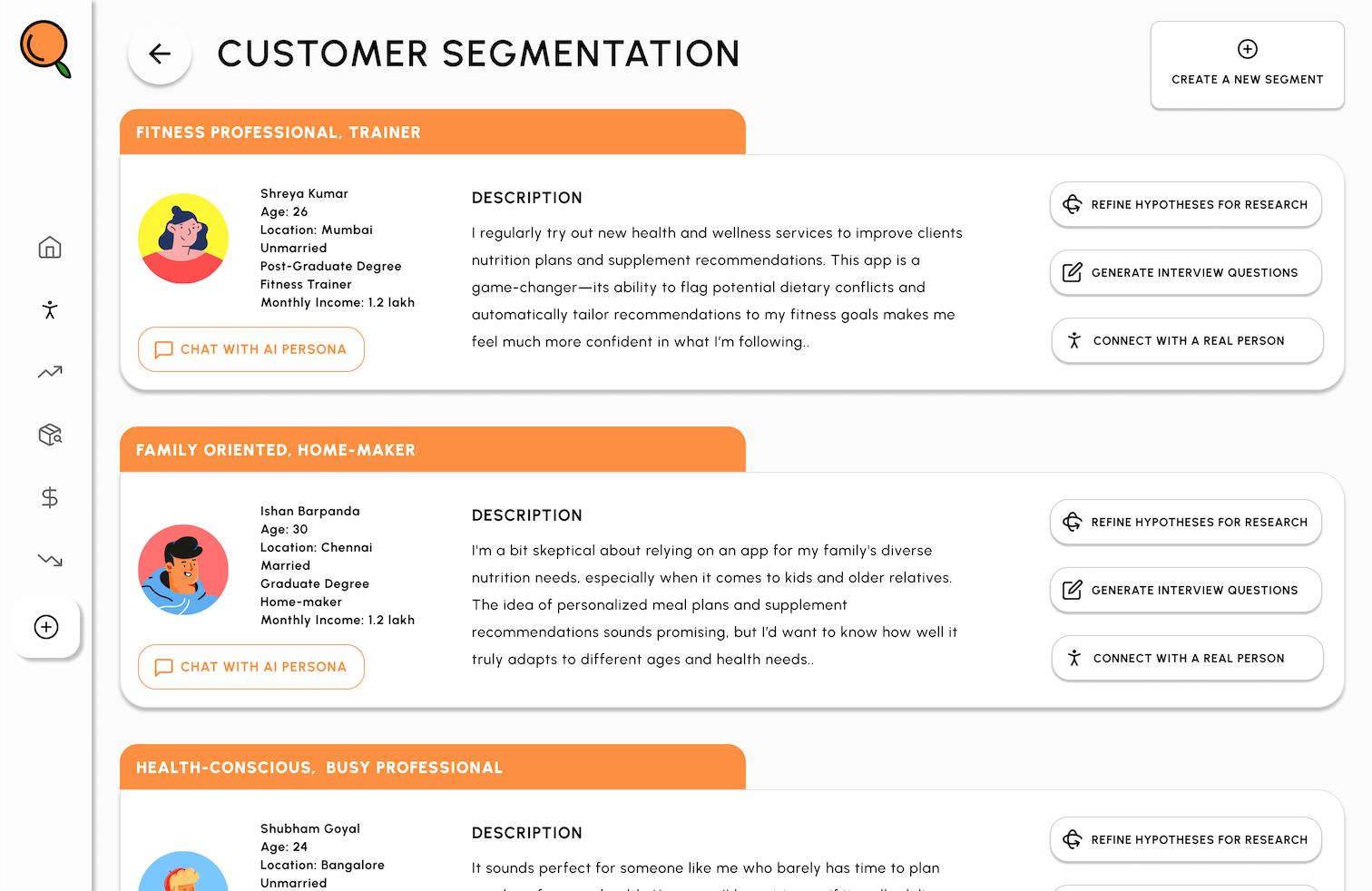 Engage with realistic AI-generated personas that reflect your target customers' behaviors and needs. Test new ideas, validate concepts, and gain instant feedback to refine your products and strategies.